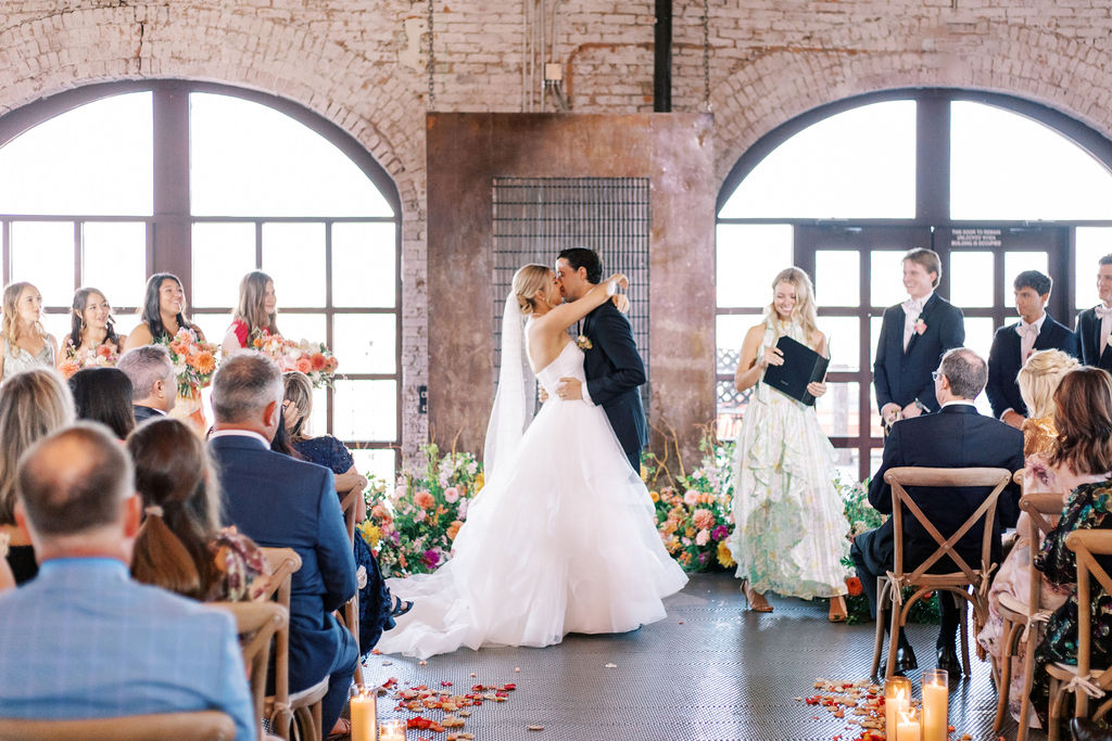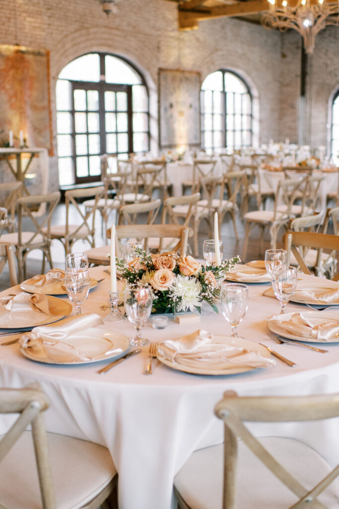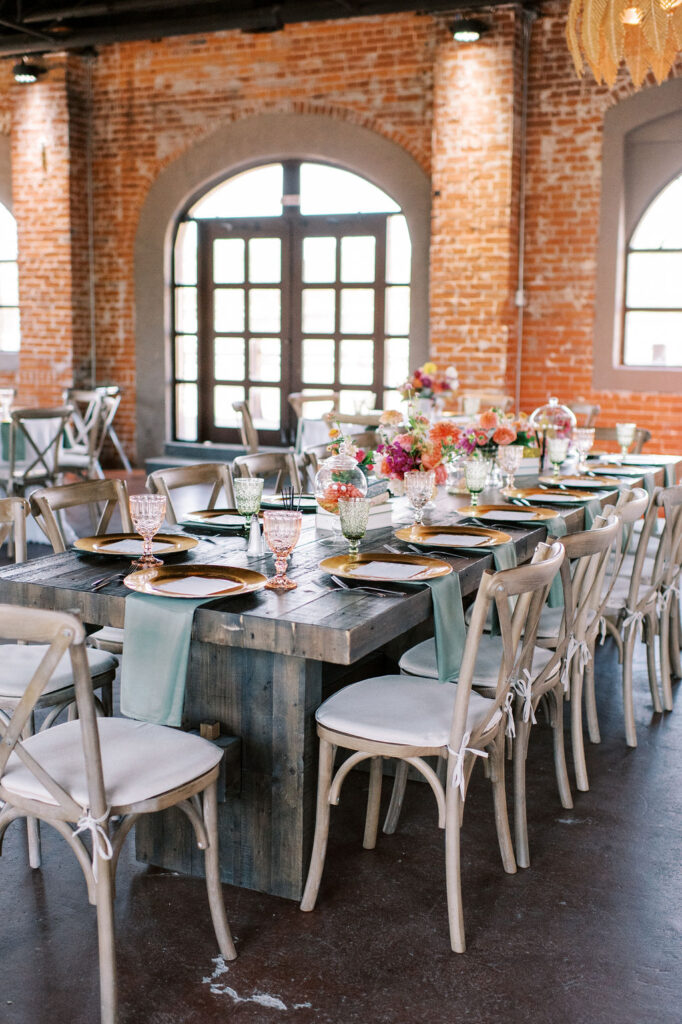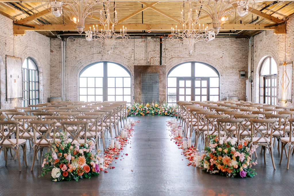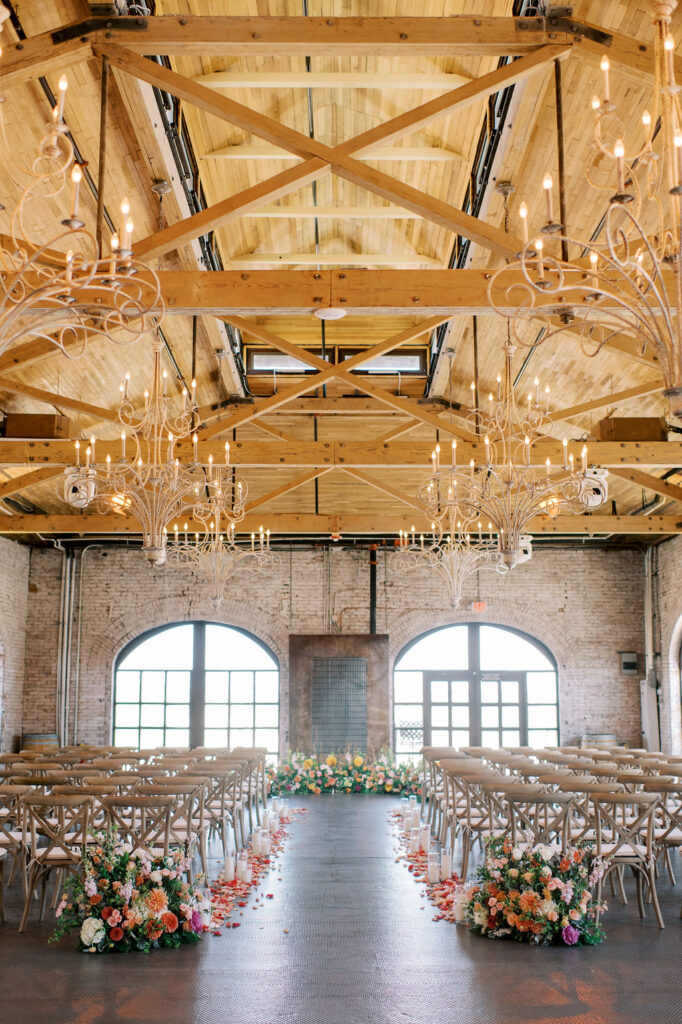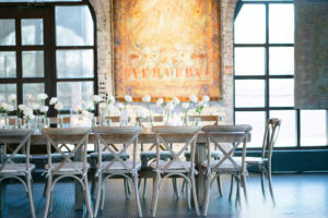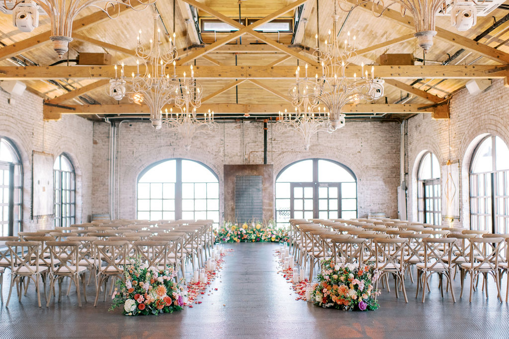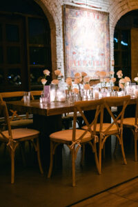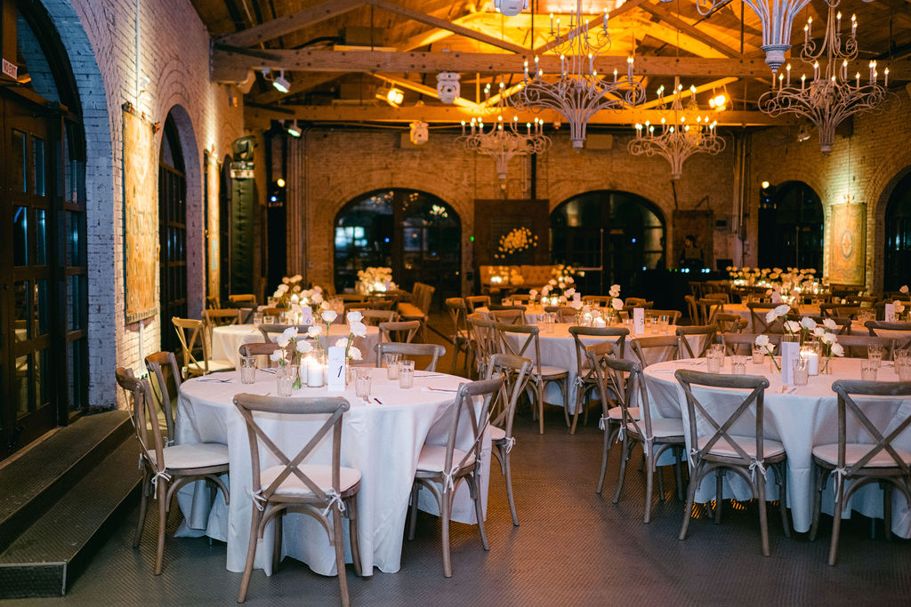 Renovated with a more ceremonious vision in mind. This rustic, yet luxurious space has impressive high vaulted wood ceilings, with customizable down-lighting, self playing baby grand piano, 8 large chandeliers, beautiful white-washed brick walls, and a large but discreet bar area.